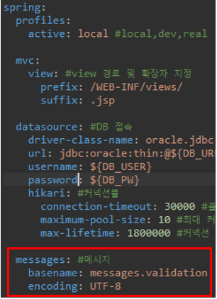 yml 설정 추가 프로젝트 소스에 보면 validation.properties 파일이 있는데, 그걸 열어준다.