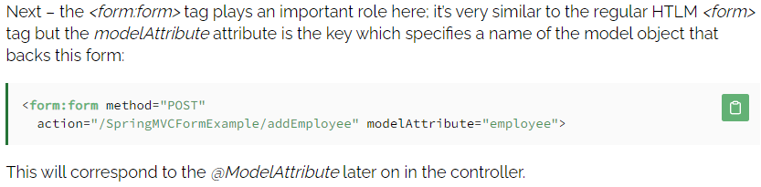 위 사이트에 Spring <form:form> 태그 튜토리얼이 있는데, 일부 설명을 가져와보겠다.