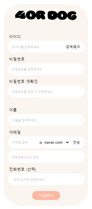 - 아이디 중복확인, 비밀번호 확인, 이메일 인증번호 등 세부 기능 정리