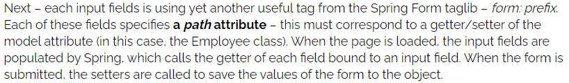 페이지가 로딩되면 Spring이 입력필드의 path와 일치하는 각 프로퍼티들의 getter를 호출해서, 값이 있으면 가져온다.