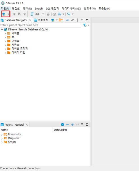 DBeaver 실행화면 그럼 아래와 같은 창이 나온다.