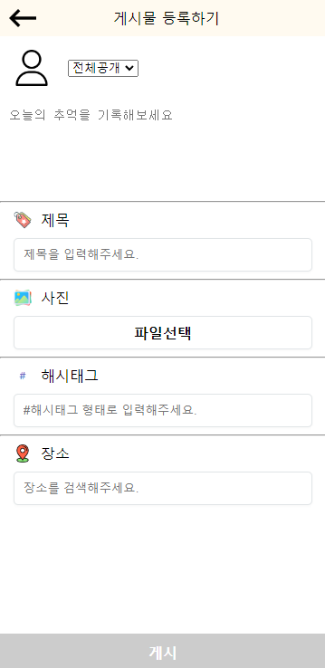 갤러리 형태의 게시판을 만드는데 글을 등록할 때 장소를 검색해서 함께 등록할 수 있는 기능을 만들고자 했다.