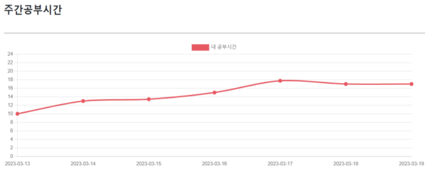 - 로그인 한 회원의 마이페이지에 해당 회원의 주간 공부시간을 일별 그래프로 보여준다.