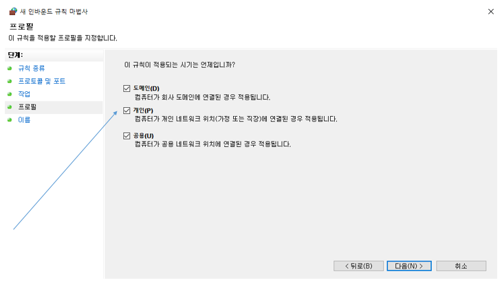 제어판 - 시스템 및 보안 - Windows Defender 방화벽 - 고급설정 - 인바운드 규칙 - 새규칙