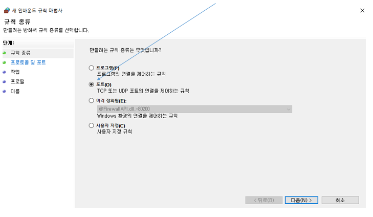 방화벽 - 인바운드 규칙 - 새규칙 이후부턴 그냥 따라하면 된다.