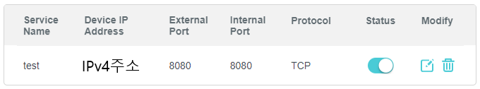 - Internal Port : 외부에서 들어왔을 때 연결해줄 내부의 포트 번호